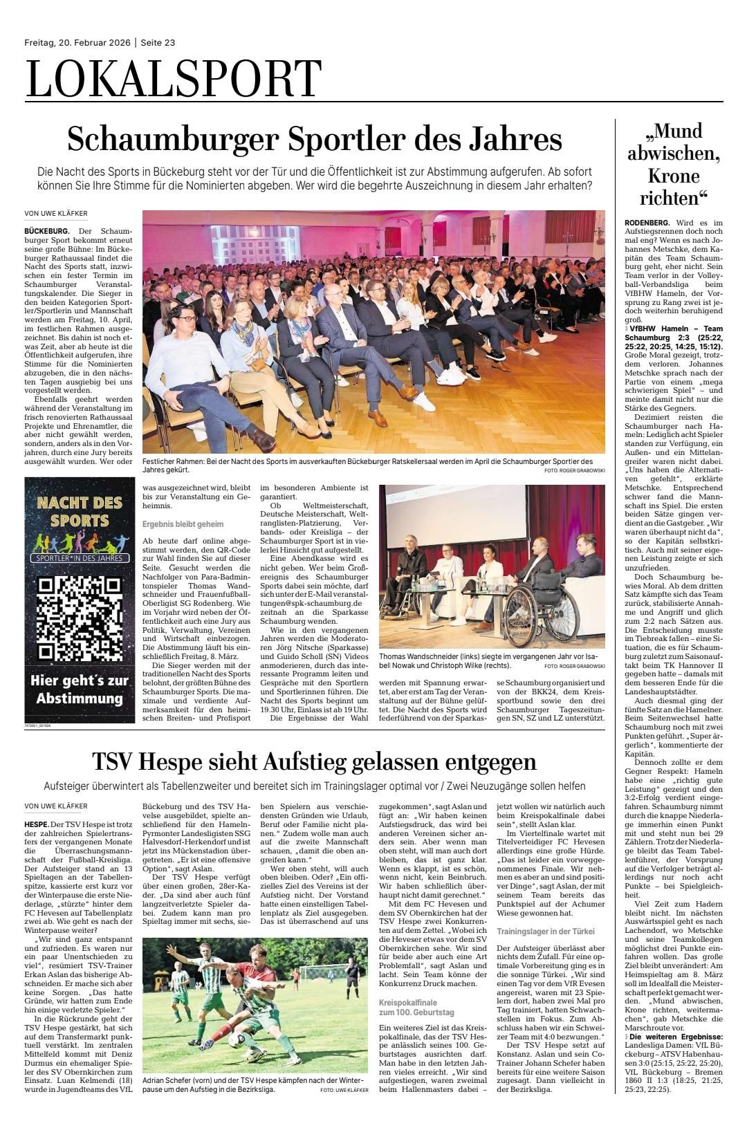 Zwei Wochen nach der Europameisterschaft in Molveno fand am vergangenen Wochenende die Deutsche Meisterschaft im Eisschwimmen 2026 im sächsischen Neuhermsdorf nahe Altenberg statt. Der Wettkampf im Osterzgebirge an der tschechischen Grenze bildete zugleich das Finale des German-Ice-Cup sowie die letzte Weltcup-Station der Saison 2025/2026. Geschwommen wurde in einem kleinen Waldsee auf knapp 800 m Höhe bei einer Wassertemperatur von 2,3 °C. Eine besondere Herausforderung stellten die winterlichen Bedingungen mit schneebedeckter Umgebung sowie der steile, vereiste Zugang zum Wettkampf- und Aufwärmbereich dar. Die Paraschwimmerin der SSF Obernkirchen überzeugte mit herausragenden Leistungen. In der Parawertung gewann sie dreimal Gold über 100 m Freistil (1:32,92), 100 m Brust (2:06,91) und 50 m Freistil (0:42,60). In der inklusiven Altersklasse AK50 kamen zwei weitere Goldmedaillen über 100 m Brust und 100 m Freistil sowie eine Silbermedaille über 50 m Freistil hinzu. Auch Tobias Prüßner zeigte sich in starker Form. Er sicherte sich in der AK45 drei Deutsche Meistertitel über 50 m Freistil (0:33,83), 100 m Freistil (1:17,09) und 250 m Freistil (3:47,02). Über 100 m Brust belegte er mit einer Zeit von 1:53,30 Minuten den vierten Platz.