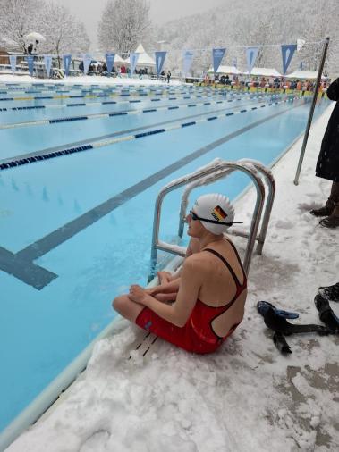 Unsere Para-Schwimmerin Tina Deeken hat bei den Eisschwimm-Europameisterschaften im italienischen Molveno in den Dolomiten eindrucksvoll ihre Klasse unter Beweis gestellt. In eisigem Wasser mit Temperaturen um die 1–2 Grad absolvierte Tina an fünf intensiven Wettkampftagen insgesamt zehn Starts (7 Einzelstarts und 3 Staffelstarts) – und wurde mit sieben Medaillen belohnt.